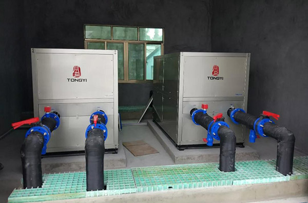 1、選用水源熱泵機組。根據客戶使用環境,項目地點靠近大海,有源源不斷的海水作為水源提供,而且海南氣候溫暖,海水年最低溫度都在18℃以上,非常利于水源熱泵的運行。選擇水源熱泵的制冷量要比空氣源熱泵好,滿足客戶夏天給蝦池降溫要求。
